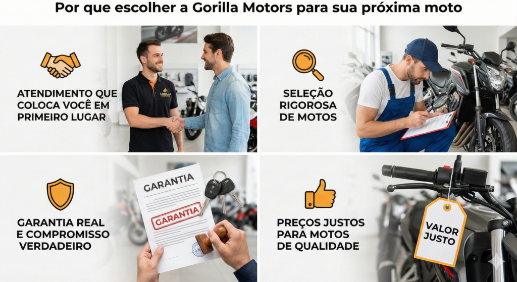 Você já pesquisou durante semanas. Entrou em grupos, perguntou pra outros motociclistas, comparou preços. Mas no fundo bate aquela insegurança: será que essa moto foi bem cuidada? Será que vou ter problema depois? Será que vou me arrepender?